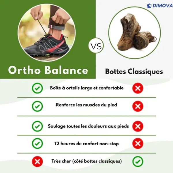 Les chaussures Ortho Balance ont été conçues avec soin pour vous accompagner au quotidien, que ce soit pour le travail, les balades ou vos aventures en plein air.