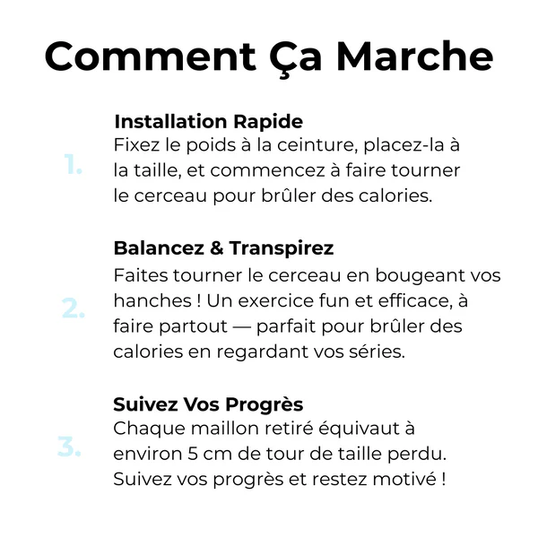 Prêt à transformer votre routine fitness ? Balancez vers une version plus mince et plus saine de vous-même avec le TailleFit™ Cerceau Amincissant !